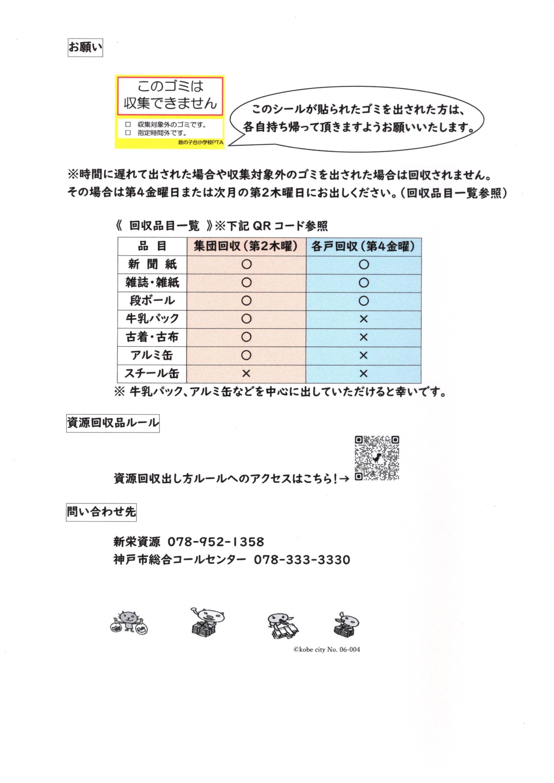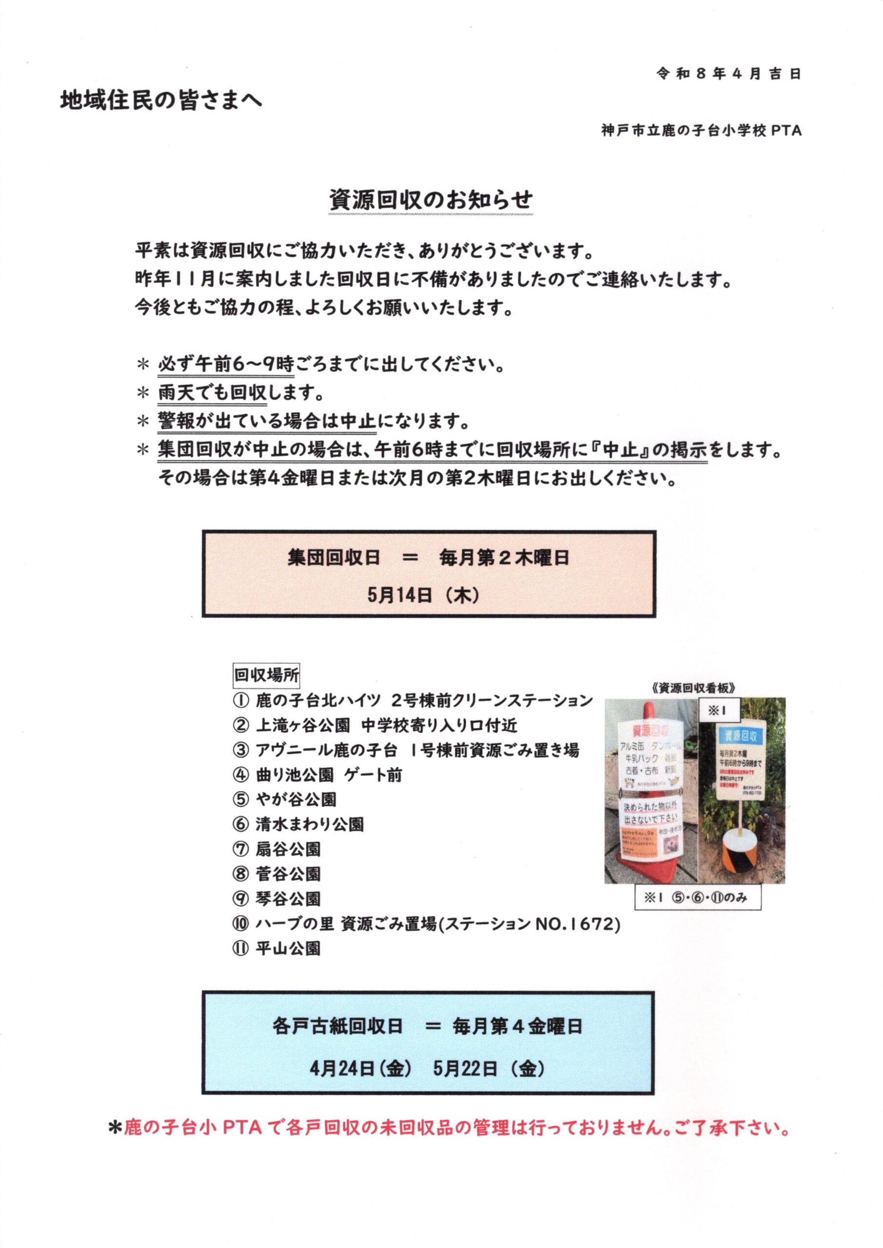 資源回収のお知らせ —鹿の子台小学校PTA—